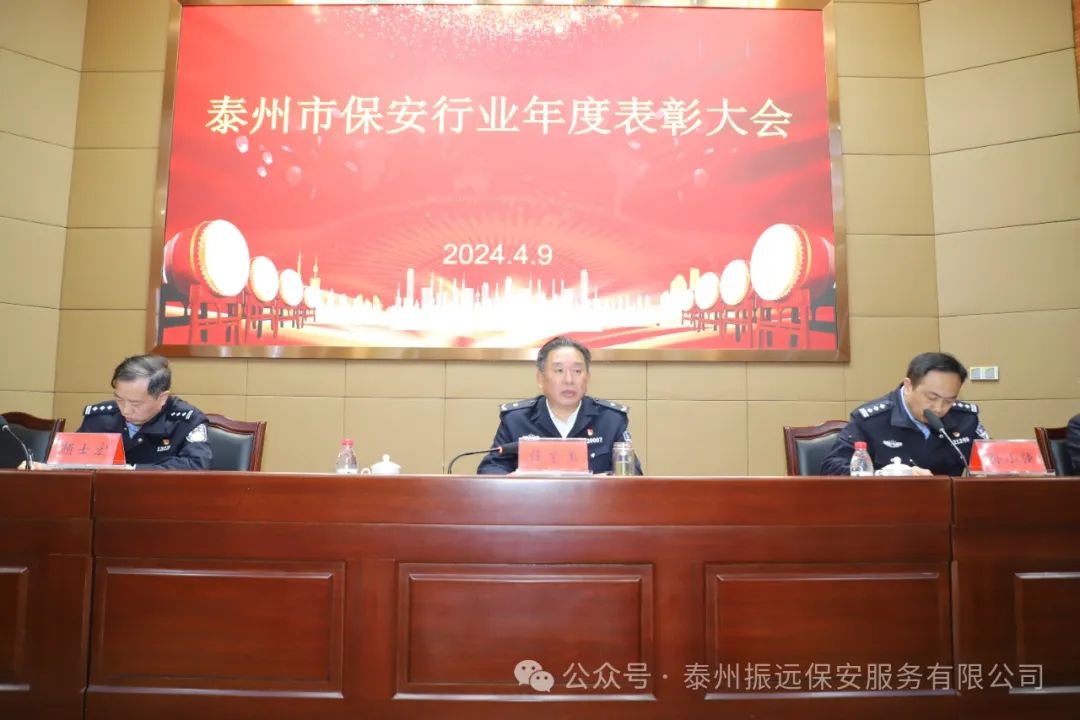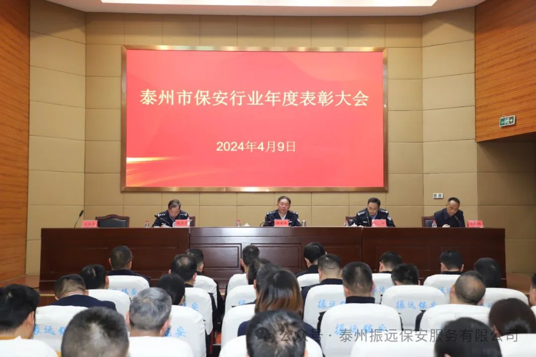 2024年4月9日下午,泰州市公安局在我公司召开全市保安行业2023年度表彰大会,表彰年度优秀保安服务公司以及优秀保安员,并对今年全市保安监管、保安协会工作进行动员部署。