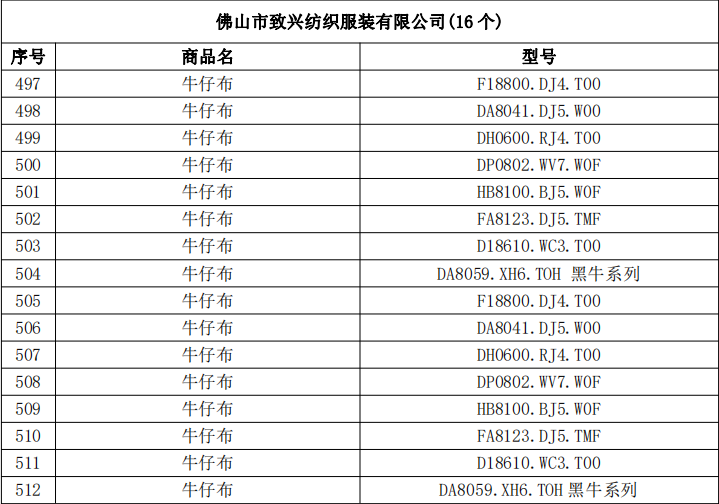 致兴纺织入围“佛山优品”产品明细