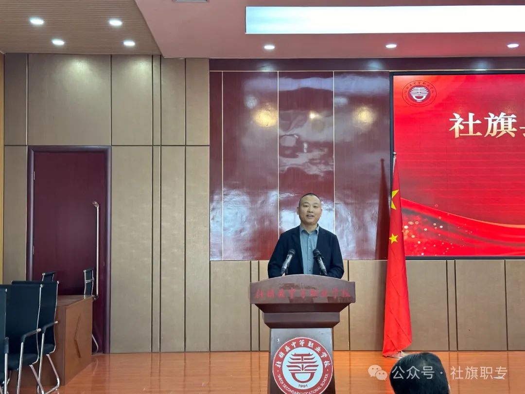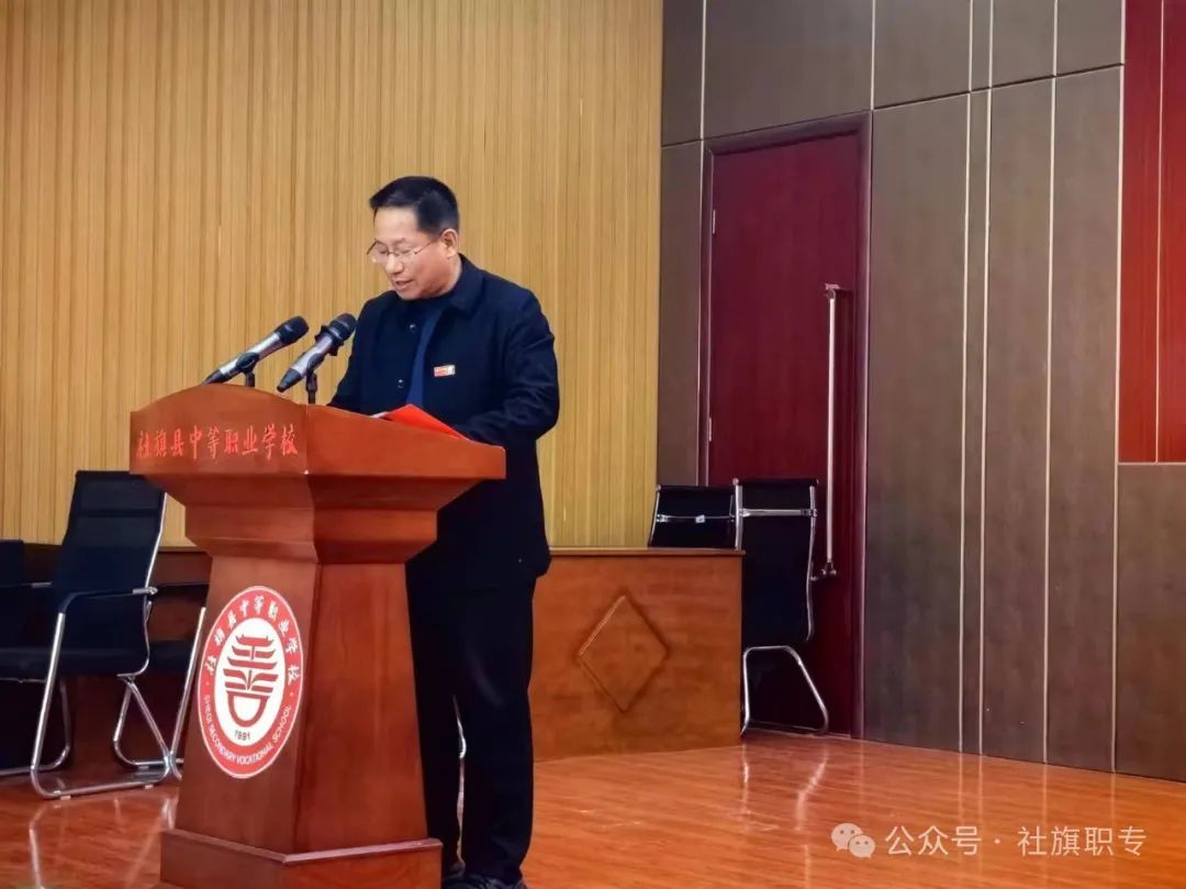 刘质朴校长致欢迎辞。他首先向到场的来宾表示热烈欢迎和衷心的感谢。他指出,社旗县中等职业学校的发展定位就是立足县域经济实际,服务社旗县域经济社会发展,不断探索校企合作、产教融合之路。货架产业已成为我县支柱产业之一,货架产业学院的成立恰逢其时,学校坚决落实货架产业高质量发展座谈会议精神,以人才链为抓手,实施弹性学制、工学交替等方式,深入推进产教融合,立足企业实际,培养学生电商技能,使学生在企业中锻炼成长。为企业提供电商直播、销售等优秀人才资源,实现校企合作共赢。