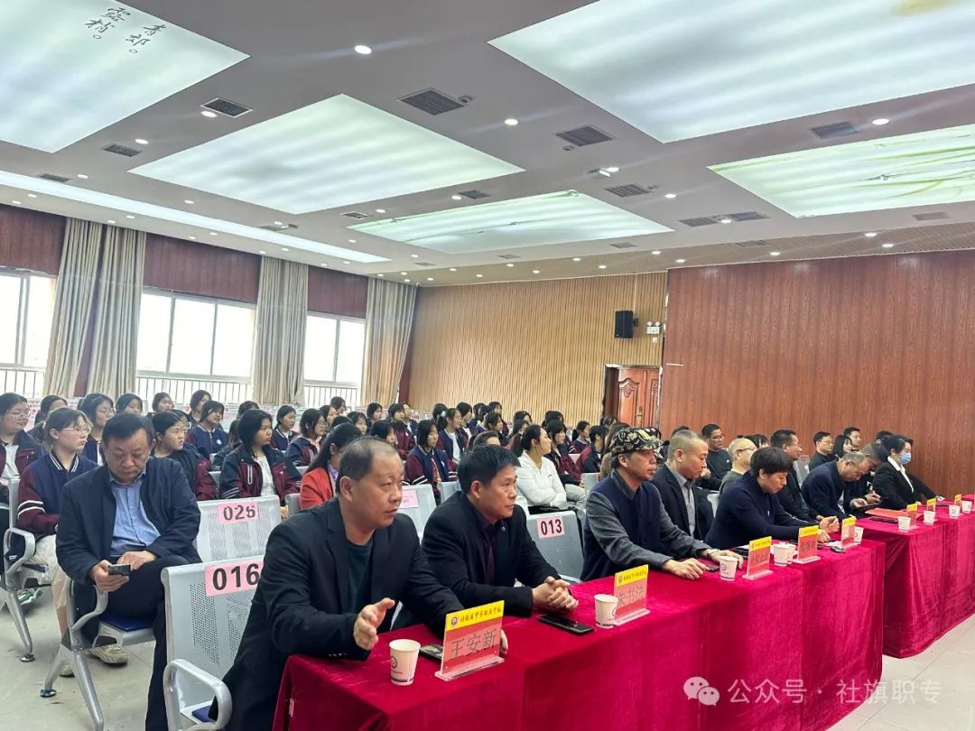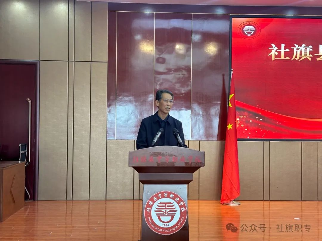 为深化产教融合,加强校企合作,进一步提高人才培养质量,4月10日上午,社旗县货架产业学院揭牌仪式在我校隆重举行。社旗县先进制造业开发区副主任郭晓辉,南阳货架商会副会长尚增顺,社旗县教体局职成教科科长徐辉,社旗县中等职业学校党总支书记李永敬,校长刘质朴,副书记宋江彦,副校长李文成、宋林芝、朱书法、王安新及企业方代表,全体中层干部,部分师生代表参加了仪式。仪式由李文成副校长主持。