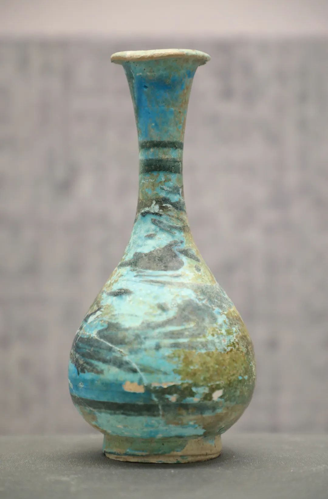 当阳峪窑孔雀蓝绞釉玉壶春瓶