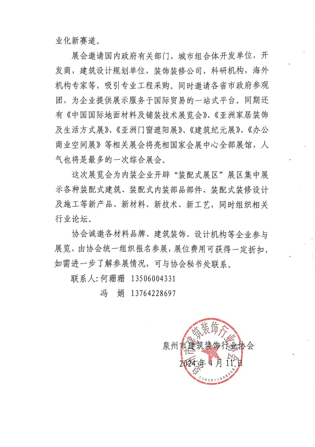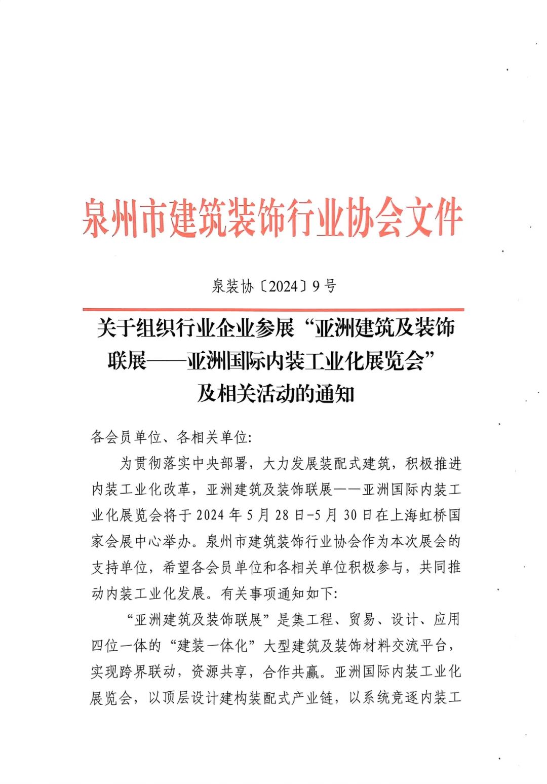 关于组织行业企业参展“亚洲建筑及装饰联展——亚洲国际内装工业化展览会”及相关活动的通知