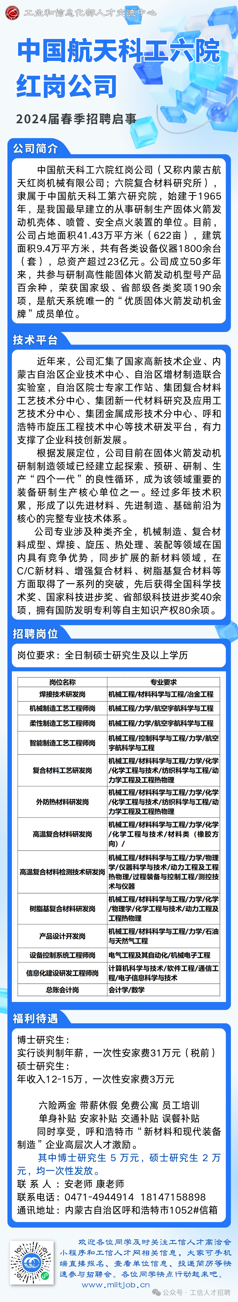六险二金!内蒙古航天红岗机械有限公司招聘公告