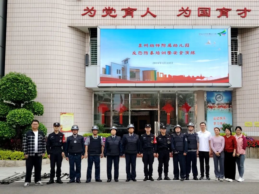 为进一步落实校园安保工作,提高校园保安队伍应急处突能力,全面提升学校安保人员的综合素质和实战水平,4月10日上午,鲤城金盾公司联合泉州市公安局鲤城分局开元派出所、泉州师范学院附属小学、泉州幼儿师范学校附属幼儿园开展校园安保技能培训活动。