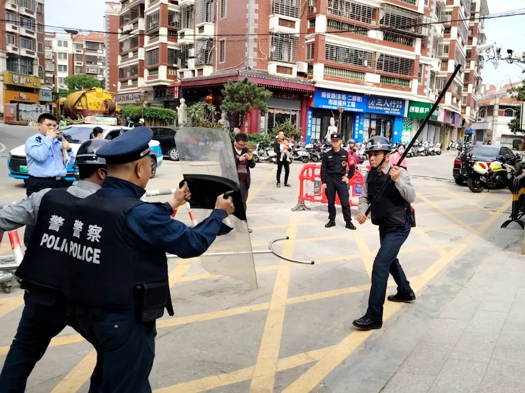 活动现场,开元派出所民警王海宝采取理论与实操相结合的方式,详细讲解了门岗护学、值班巡防、应急处突以及钢叉、盾牌、橡胶棍等安保器械的使用方法,并结合校园安保工作实际需要,针对可能存在的暴力突发事件,对安保人员开展了防暴防恐、应急处突等实操演练,为保安员能在后续的工作中更加有效地应对各种突发情况打下坚实的基础。