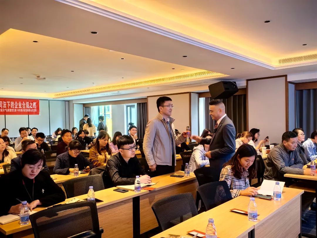 青羊区蔡桥商会联合党支部书记王永锋、成都市航空航天产业联盟党支部书记王磊、青羊区经济集聚区商会秘书长黄磊;蔡桥商会理事单位泸州银行青羊支行副行长刘扬、蔡桥商会理事单位四川达通工程管理咨询有限公司总经理吕洁林、蔡桥商会理事单位四川金税律师事务所主任王先平、蔡桥商会会员单位成都怡和酒店管理有限责任公司总经理杨薛、蔡桥商会会员单位四川法拉第电子科技有限公司总经理熊丽霞、蔡桥商会会员单位成都锦官上宴酒店管理有限公司总经理王能等部分会员代表;成都市航天航空产业联盟秘书处与其部分会员单位代表及四川省吉林商会代表合计60余人参加本次讲座。本次讲座由四川君合律师事务所执行主任兼党总支书记黄明建老师主讲。