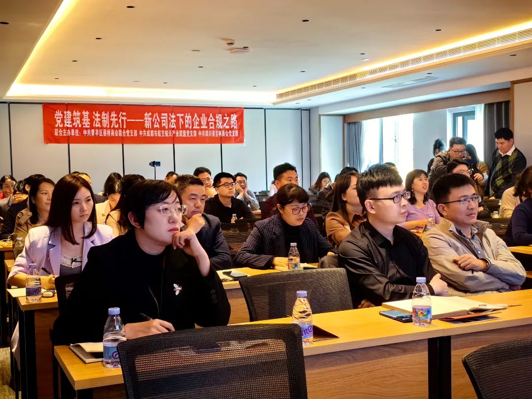 2024年4月11日下午,由青羊区蔡桥商会联合党支部、成都市航空航天产业联盟党支部、四川省吉林商会党支部联合举办的以《党建筑基 法制先行——新公司法下的企业合规之路》为主题的公益讲座圆满结束。