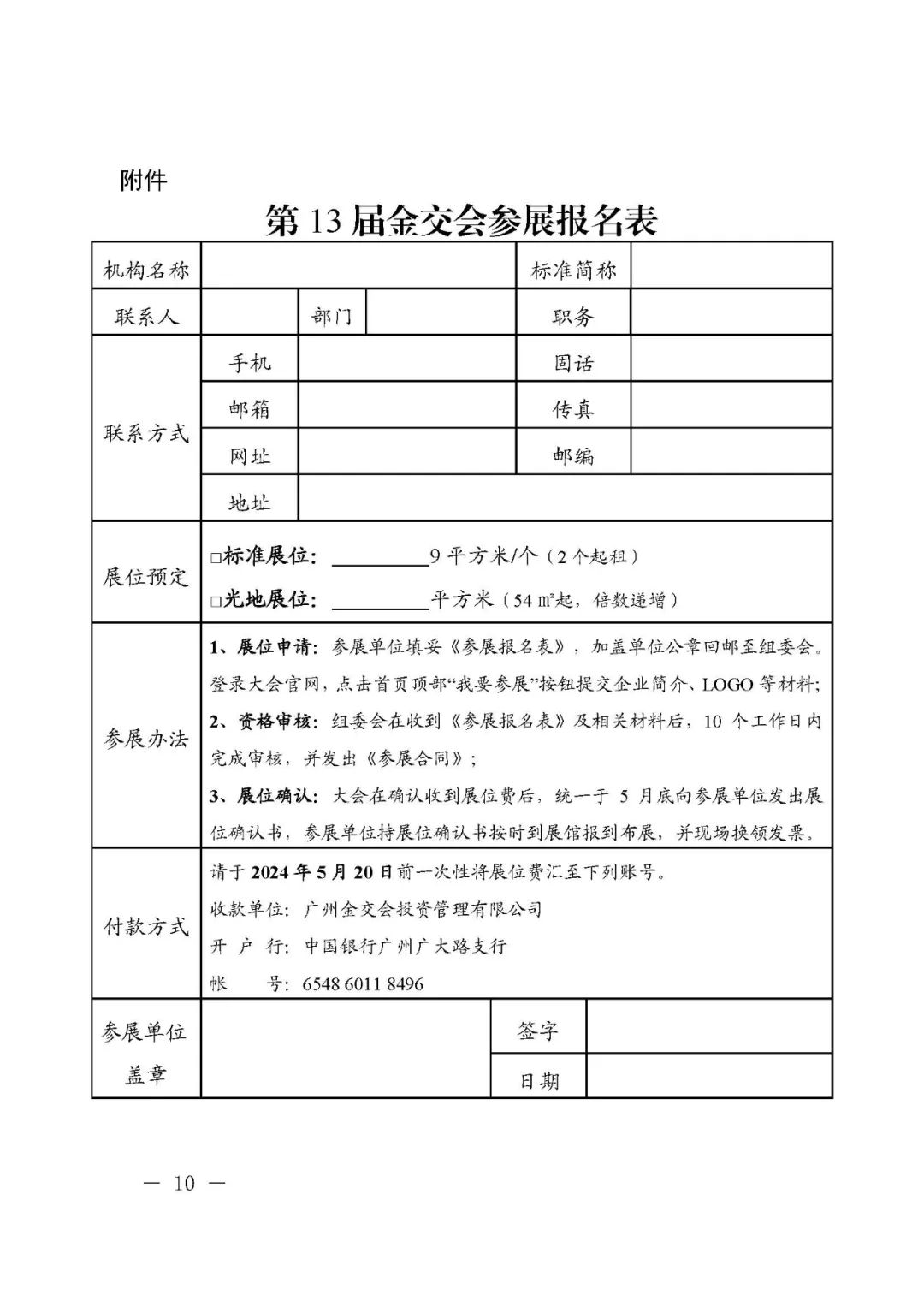 第13届中国(广州)国际金融交易·博览会参展的通知