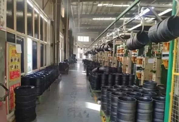 检查过程中,艾斯顿轮胎的硫化车间正在生产。