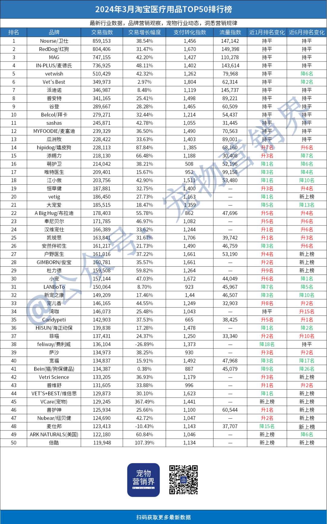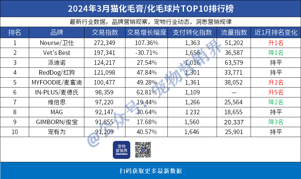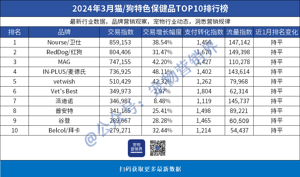 2.Vet's Best - 2024年3月排名5,交易增长幅度为2.97%,而2023年3月排名为11,上升了6名。