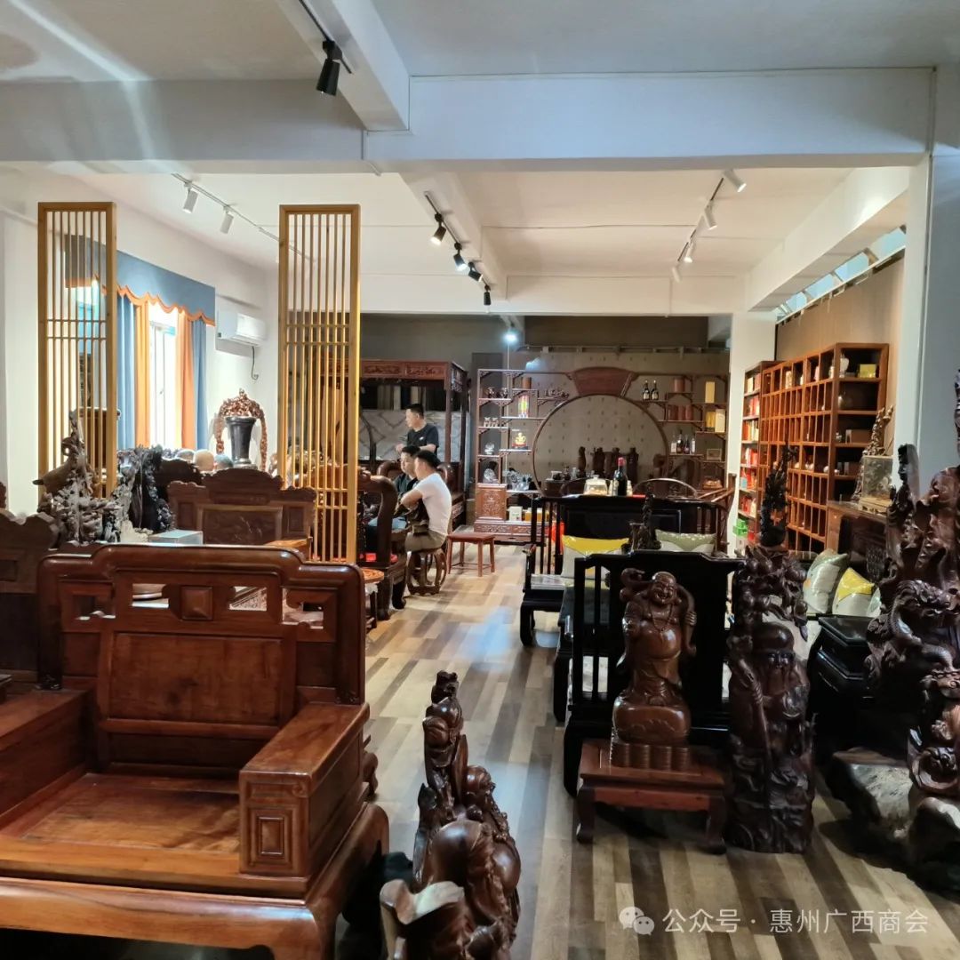 为充分发挥商会与会员企业的纽带作用,促进会员企业发展,2024年04月09日上午,由我会会长吕小江率队,张雄亦常务副会长、陈洪贵、潘炎明、杨则项、黄伟刚、梁思思、党敏一行8人走访商会会员温明光的企业——惠城区桂源红木家具店。