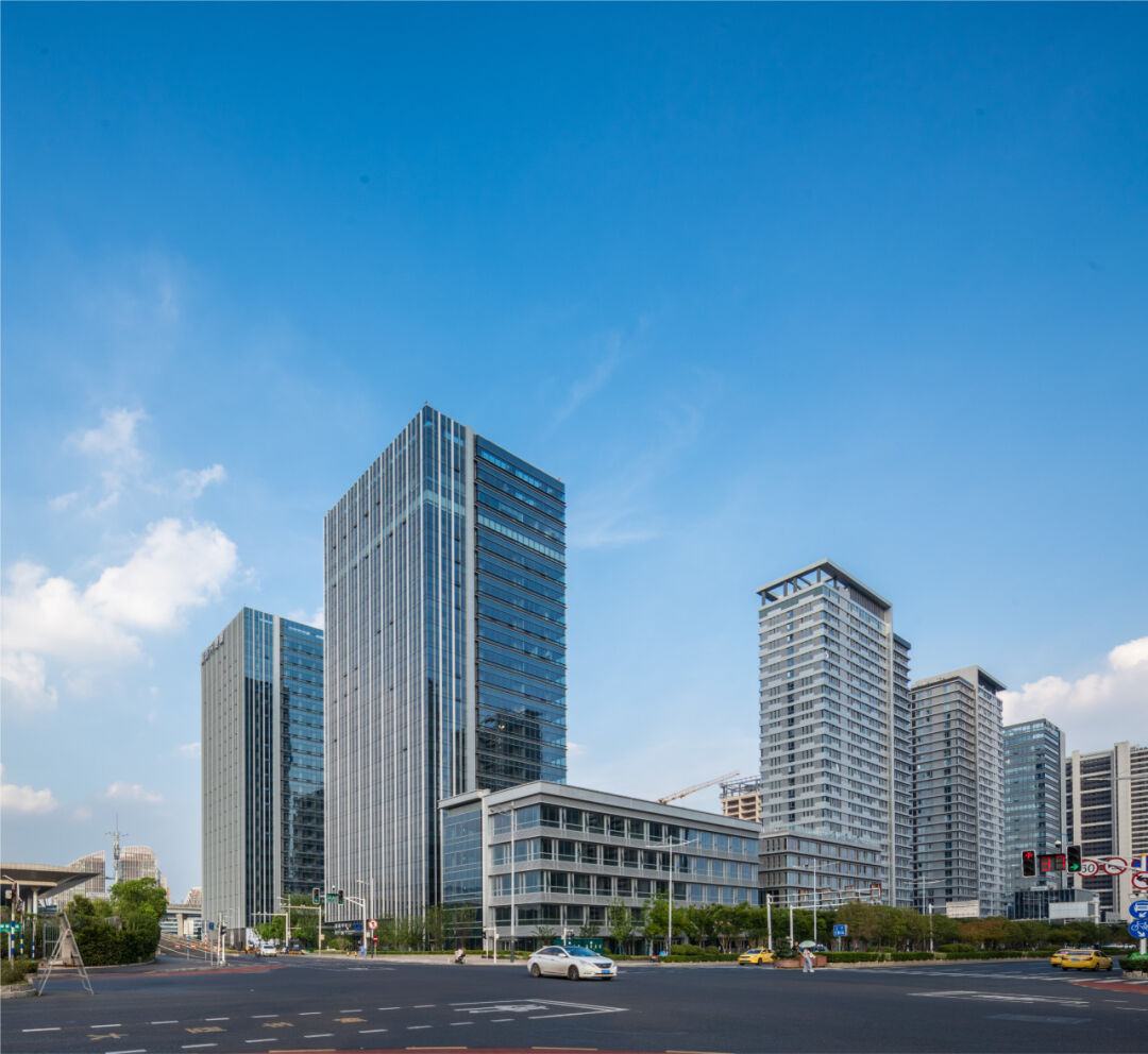 出自马达思班建筑事务所之手,是一座绿色生态城市客厅。9层低密花园式办公楼、都市盆景、江南园林之间相得益彰,更有视野辽阔的空中花园、全通透玻璃幕墙、三维绿化和瀑布水景。