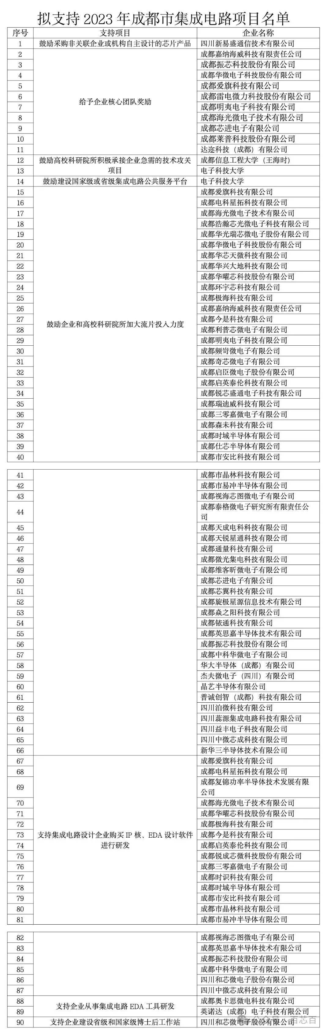 据成都市经济和信息化局官方网站,2023年成都市集成电路项目拟支持名单于4月7日正式公示。