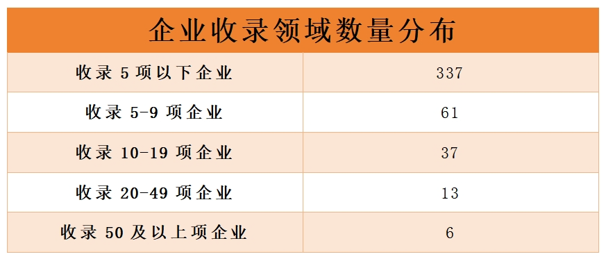 4、数据统计显示,第十一版全景图中收录领域数量达到或超过50项的网络安全厂商共有6家,占比1.3%;收录领域数量不足5项的企业有337家,占比74.6%。显示当前我国网络安全行业仍然呈现较为明显的碎片化、多样化发展态势。