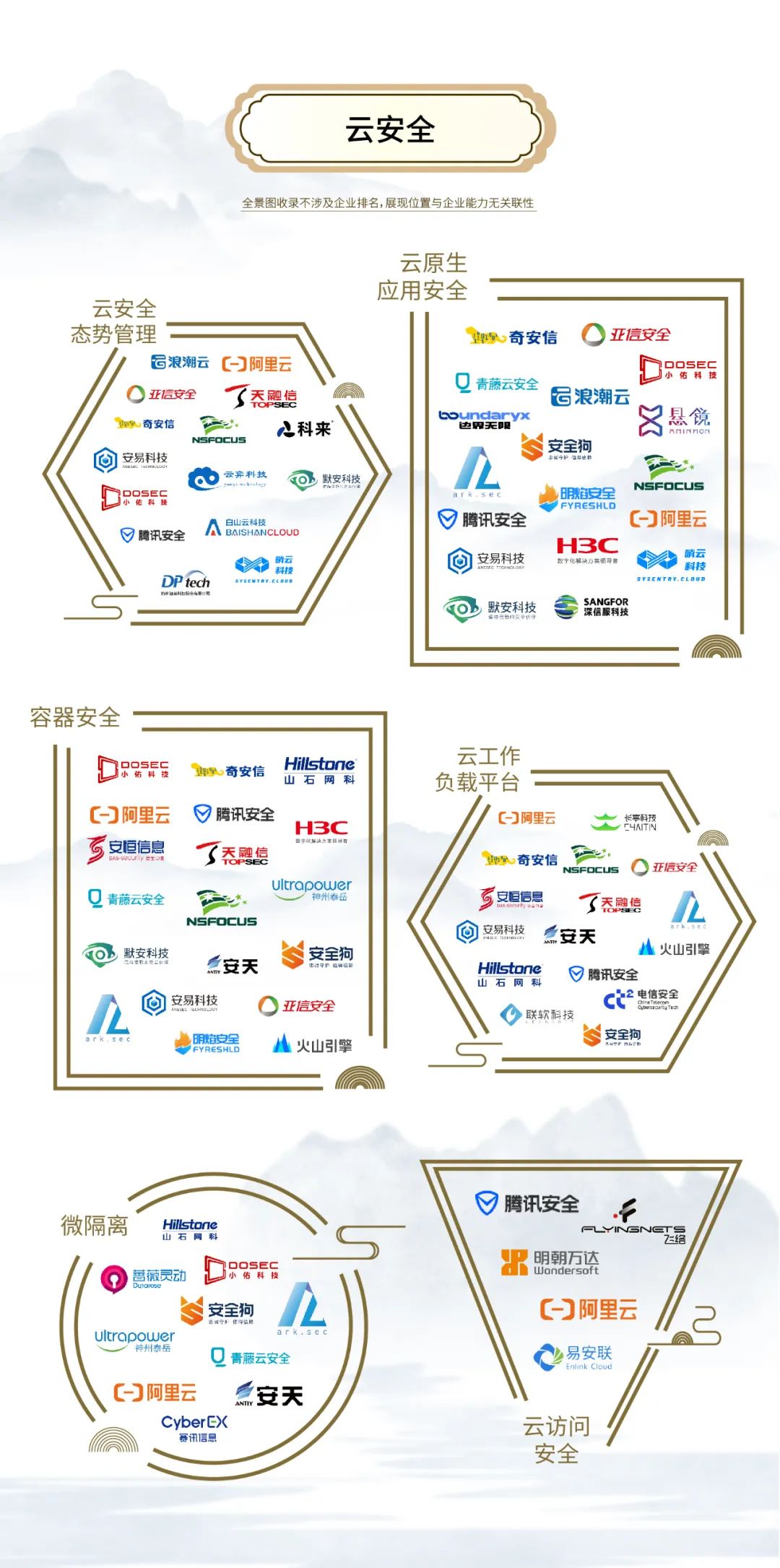 将“云计算安全”一级分类下的二级细分领域调整为“云安全态势管理”、“云工作负载平台”、 “云原生应用安全”、“云访问安全”、“容器安全”、“微隔离”6项,本次共收录83项企业产品与服务;