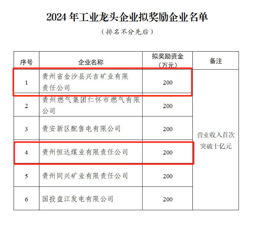4月8日,省能源局发布《关于2024年工业龙头企业拟奖励企业名单的公示》,拟对纳入2024年工业龙头企业培育奖补资金预算的能源企业给予奖励。贵州省浙江平阳顾问李丕国名下企业贵州恒达煤业有限责任公司、商会理事长卢成城名下企业贵州省金沙县兴吉矿业有限责任公司荣登省能源局2024年工业龙头企业拟奖励名单。