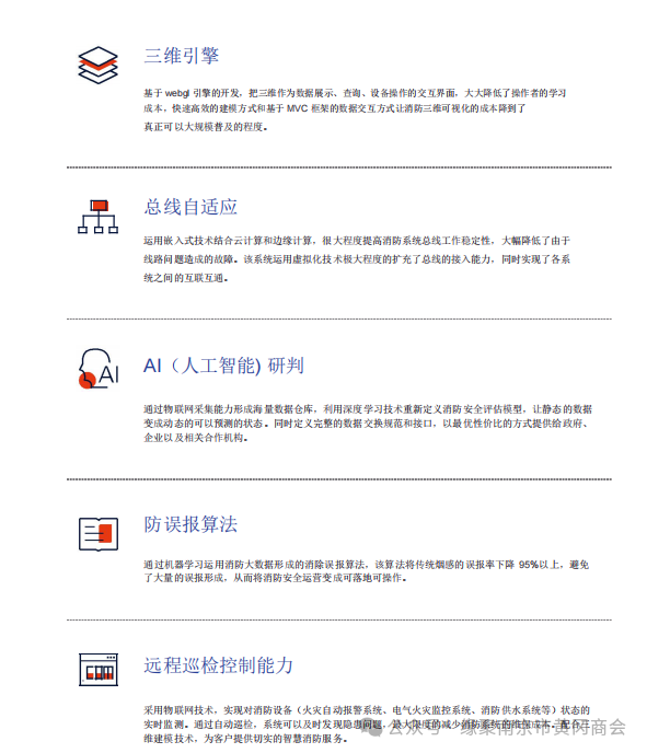 据了解,2022 年,百年科技推出的《智慧消防云服务平台》与《江苏社会单位安 全管理平台》进行系统对接,发起了《江苏社会单位安全生命线项目》并牵头组建了联合执行团队。联合执行团队以《江苏社会单位安全管理平台》为根本,以《智慧消防云服务平台》为核心,以《智能维保系统》为抓手,通过公司自研的消防主机上云和总线自适应装置进行传统消防的数字化升级和改造,结合智慧消防软硬件产品销售与平台运营服务的相互拉动,实现用户的消防设备信号海量接入。百年科技在新的商业模式推动下,实现从增量向存量市场、从销售向服务市场的转变,构建了可持续发展能力。