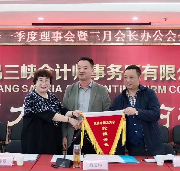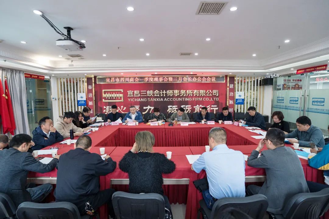 4月10号下午,宜昌市四川商会在三峡会计师事务所会议室,召开一季度理事会及三月会长办公会,会长魏芝均、轮值会长陈家翠、副会长李红、林杰、周能、杨浩、吴天辉,胡芳等15名理事,秘书长李晓东、办公室陈燕以及四个小组联络员,共计28人参加会议。