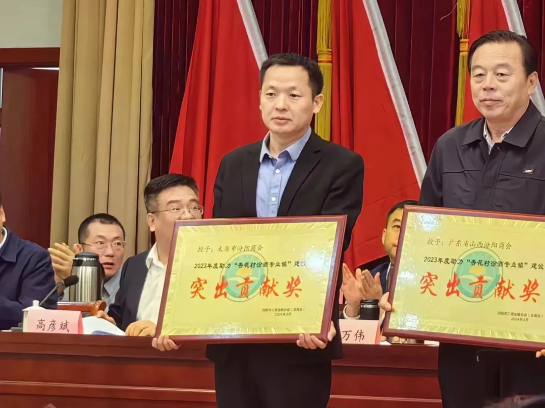 太原市汾阳商会荣获2023年度助力杏花村汾酒专业镇建设突出贡献奖,执行会长刘学武荣获优秀履职奖。