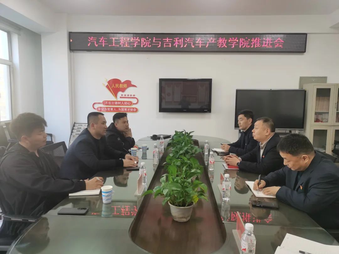 4月8日下午,吉利汽车集团产教融合高级经理吴祥宇、东部大区校企合作经理王文源、东北地区校企合作负责人卢明远来访我院,洽谈产业学院建设等事宜。汽车工程学院党总支书记霍峰、院长刘德发、党总支副书记孙浩然与企业进行了会谈。