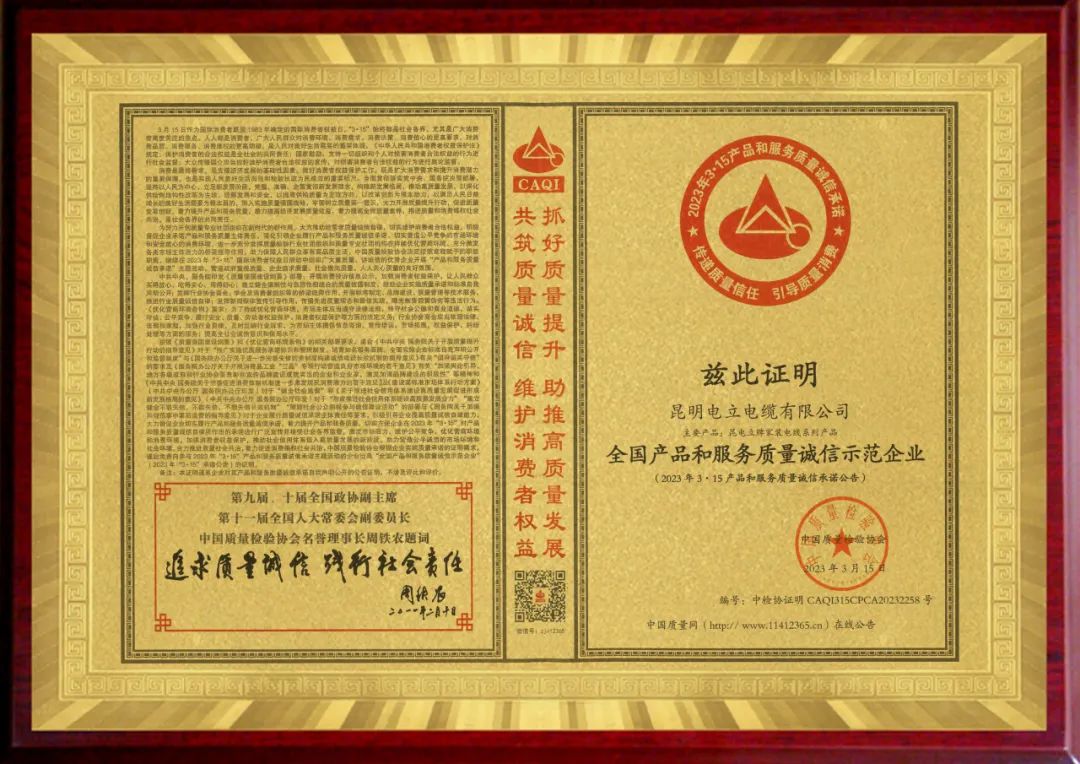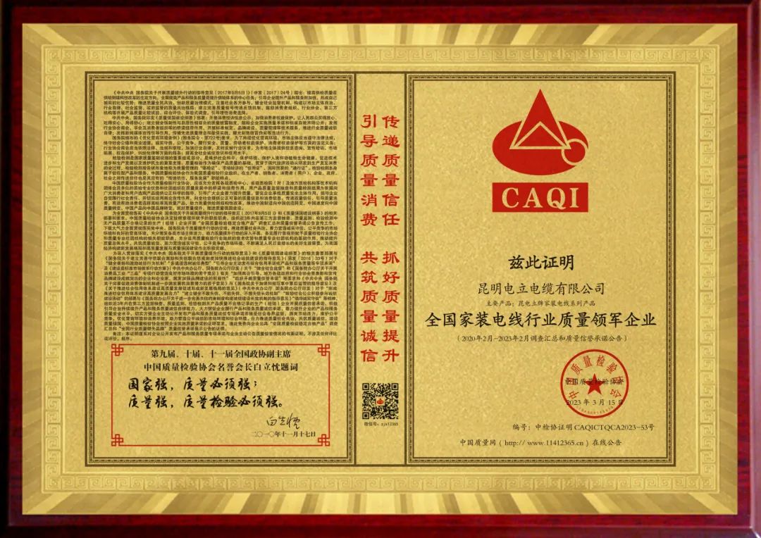 昆明电立电缆有限公司是一家以研发生产“昆电立”品牌家装双层绝缘电线而闻名线缆行业的创新型企业,“昆电立”品牌创立于1997年,始终坚持“做品质电缆,铸行业标杆”生产理念,严格按照ISO9001质量体系标准进行生产管理,让“质量才是品牌生命力”文化渗透到生产、营销服务的第一领域。