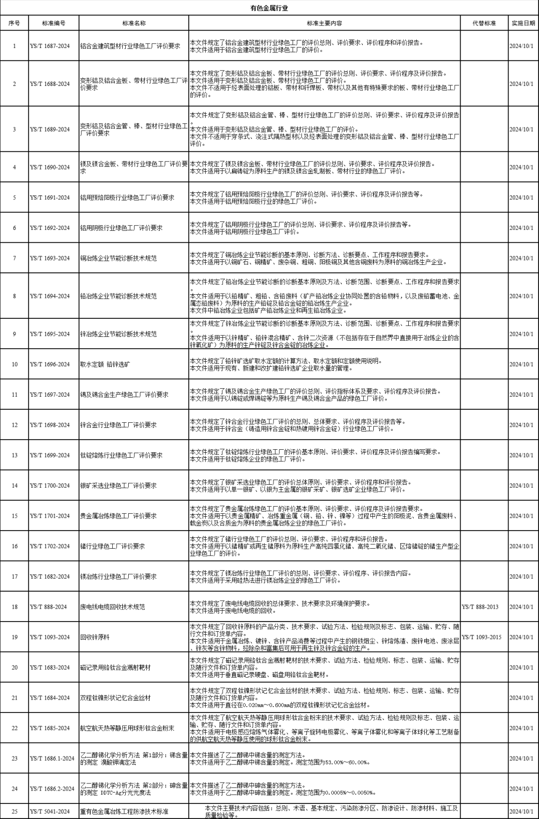 25项有色金属行业标准