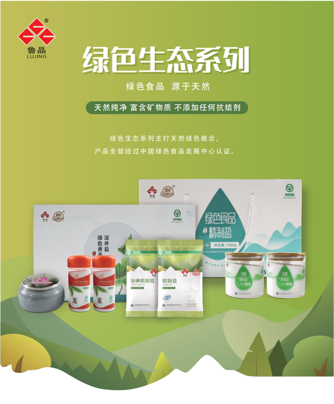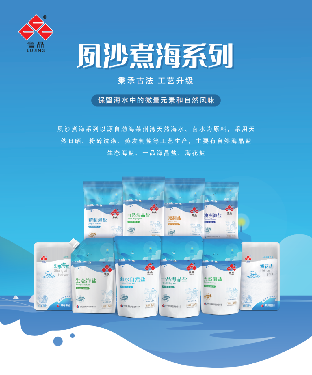 零添加系列:聚集了鲁盐集团所属企业的特色产品。海盐系列以渤海莱州湾地下卤水、天然海水为原料,采用地下古海水和海水自然晒制两项工艺,经4个月结晶成大粒海盐,再将大粒海盐重新溶解、沉淀、澄清后采用真空制盐工艺加工而成精制盐;矿盐系列以地下1000多米的深层岩盐为原料,采用真空制盐工艺制成高品质精制盐。均实现零添加抗结剂,品类领先同行业。符合人们绿色、营养、健康的新理念。口感清纯鲜美,全新调味体验,凸显食材本味。