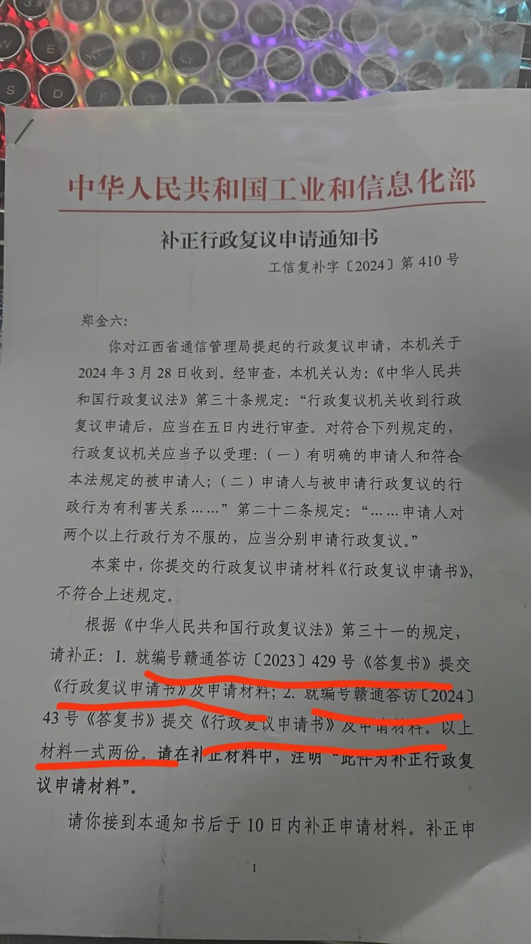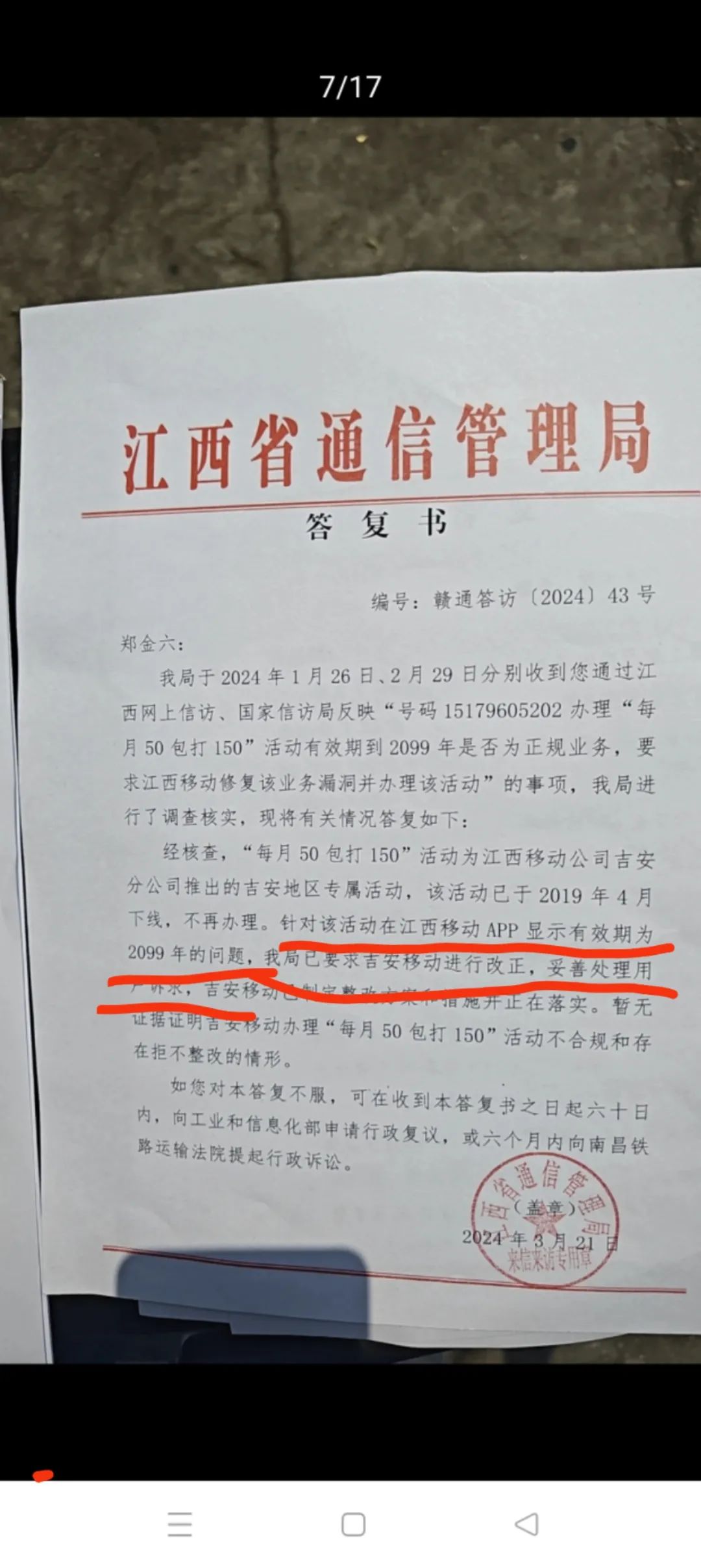 结合江西通信管理局的答复书