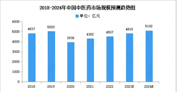 中医药行业是涵盖中医医疗服务、中药制造与销售、中医器械生产与应用等领域的集合。近日,在2024年全国两会上,中医药传承创新发展成为讨论的热点。中医药作为医药产业的重要组成部分,在全球市场上具有广阔的发展空间。政策支持是中医药行业发展的重要推动力。近年来,政府及相关部门出台了《关于加强医疗监督跨部门执法联动工作的意见》《关于进一步加强新时代卫生健康文化建设的意见》《国务院办公厅关于发展银发经济增进老年人福祉的意见》《医药工业高质量发展行动计划(2023-2025年)》《全面提升医疗质量行动计划(2023-2025年)》《“十四五”中医药文化弘扬工程实施方案》等一系列政策,鼓励中药创新,包括研发、审批、支付、人才培养等多个环节。这些政策为中医药行业的发展提供了强大的后盾。中医药的特色和优势尚未得到充分体现,学术发展相对缓慢,高层次人才不足,基层人员短缺,中医药人员中医思维和人文素养有待提高。同时,中药产业集中度较低,野生中药材资源受到破坏,部分中药材品质下降,这都对中医药的可持续发展带来了挑战。近年来,在国家政策的支持、居民收入水平的增长以及人民健康意识增强等因素的推动下,我国中医药行业市场规模呈不断增长的趋势。中商产业研究院发布的《2022-2027年中国中医药市场需求预测及发展趋势前瞻报告》数据显示,2022年我国中医药市场规模约为4507亿元,同比增长4.77%,中商产业研究院分析师预测,2023年我国中医药行业市场规模将增至4818亿元,2024年将达5102亿元。
