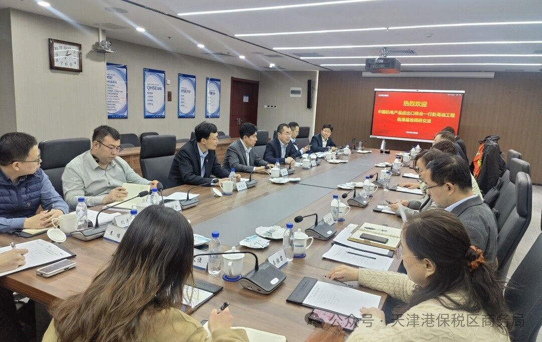 为推动国家外贸转型升级基地(海洋装备)高水平建设,4月8日,中国机电产品进出口商会和天津市商务局一行赴我区调研,商务局、临港高新局、科技局相关负责同志陪同接待。座谈会上,商务局介绍了我区基本情况及国家外贸转型升级基地(海洋装备)建设情况,临港高新局和科技局分别介绍了我区海工装备产业发展情况和海洋装备产业(人才)联盟情况。