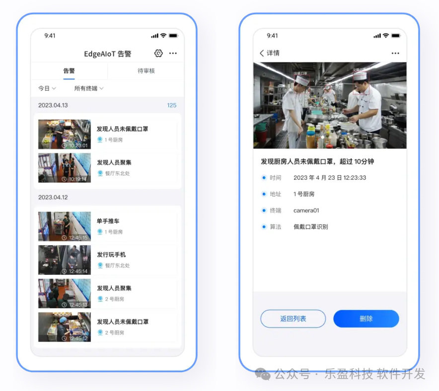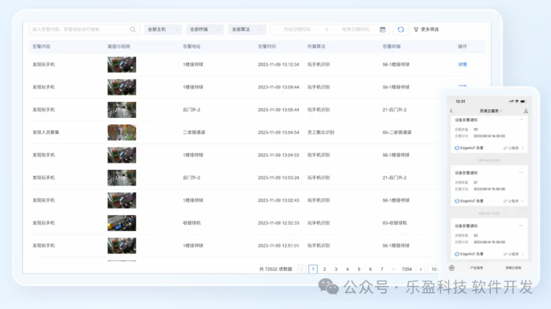 实时展示算法模型推理结果,针对紧急告警信息实时推送微信通知