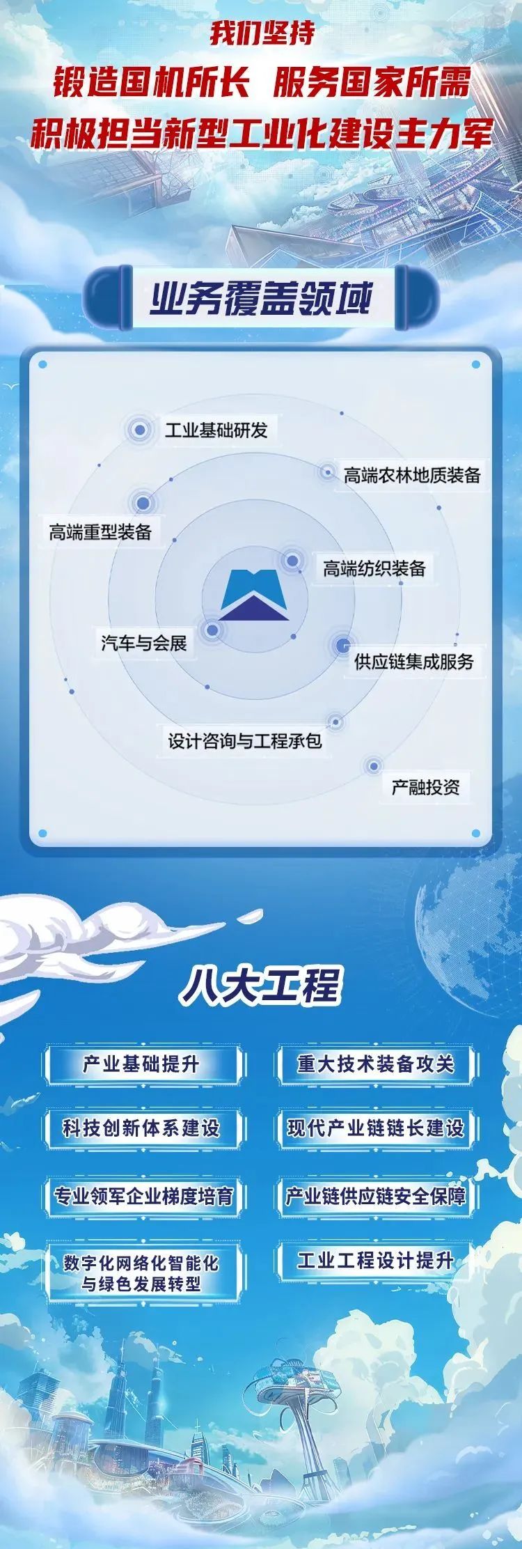 中国机械工业集团有限公司(国机集团)是中央直接管理的国有重要骨干企业,发源于第一机械工业部,由原机械工业部70多家科研设计院所、装备制造和工贸企业沿革发展而来。国机集团目前拥有29家直接管理的二级企业,12万余从业人员,12家上市公司,是世界500强企业,连续多年位居中国机械工业百强首位。