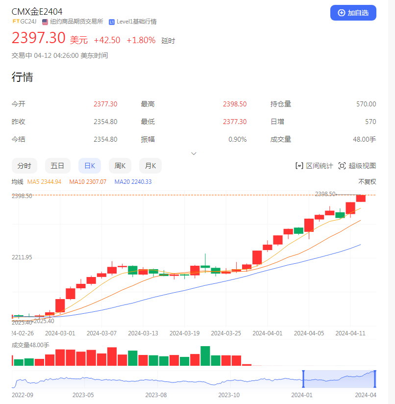 近期黄金价格持续走高,黄金持续进入涨价周期,每时每刻都在变动上升,昨天买入的家人们,您的黄金又升值了。买金小妙招,全靠买的早。