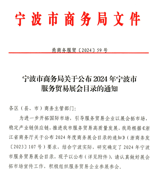 宁波跨博会在列,符合条件的企业后续可享受服务贸易相关补贴。