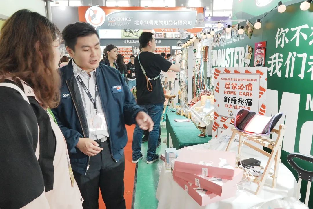 智能逗宠相机、定时喂食器等科技产品正让养宠更便利。来自台湾的康平有限公司带来了一款宠乐光能垫。“它可以为年纪比较大的宠物舒缓疼痛,加速血液循环。”展台工作人员介绍,“我们也想通过展会了解市场需求和反馈,把更多好产品带过来。”