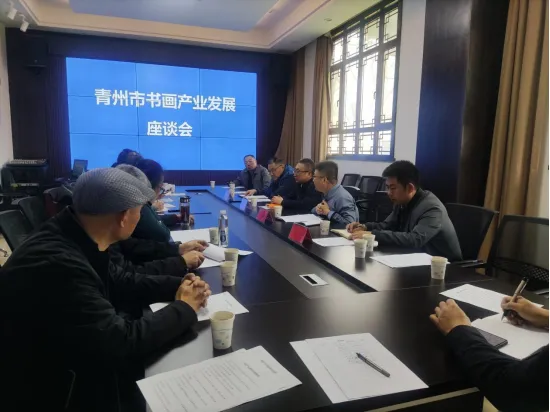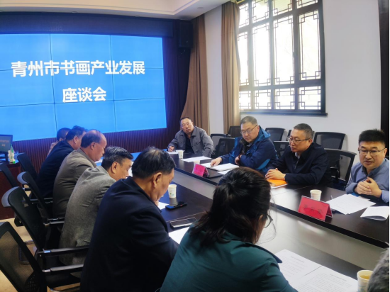 4月10日上午,青州市书画产业发展座谈会在市文旅局召开,市委宣传部、市文旅局、市书画产业集团分管领导、市画廊协会及画廊代表参加。