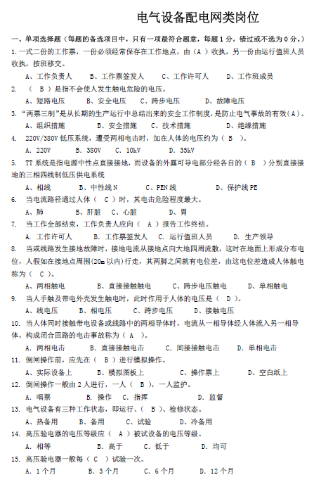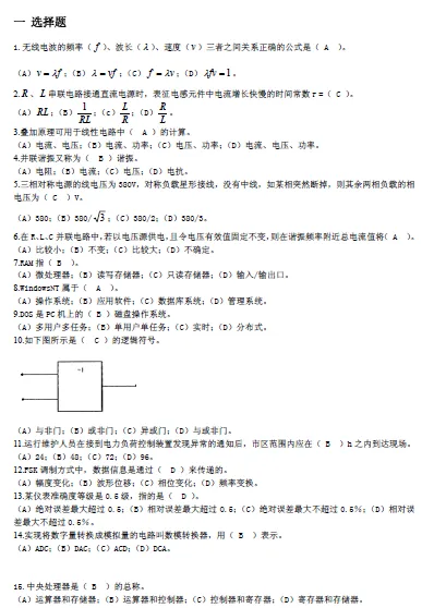 2024保山电力股份公司校园招聘笔试电气设备配电网类岗位专业知识信息通讯类笔试往年真题历年试卷2024保山电力公司招聘笔试押题卷