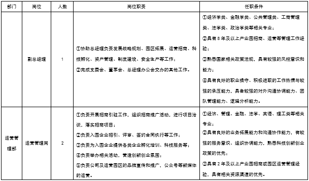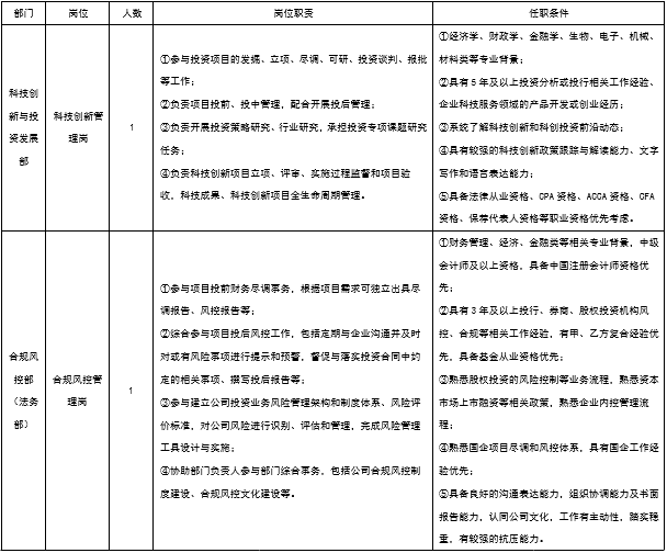 1.科技创新与投资发展部 科技创新管理岗1名;