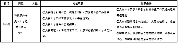 科技服务专员(人才运营业务主管)1名。