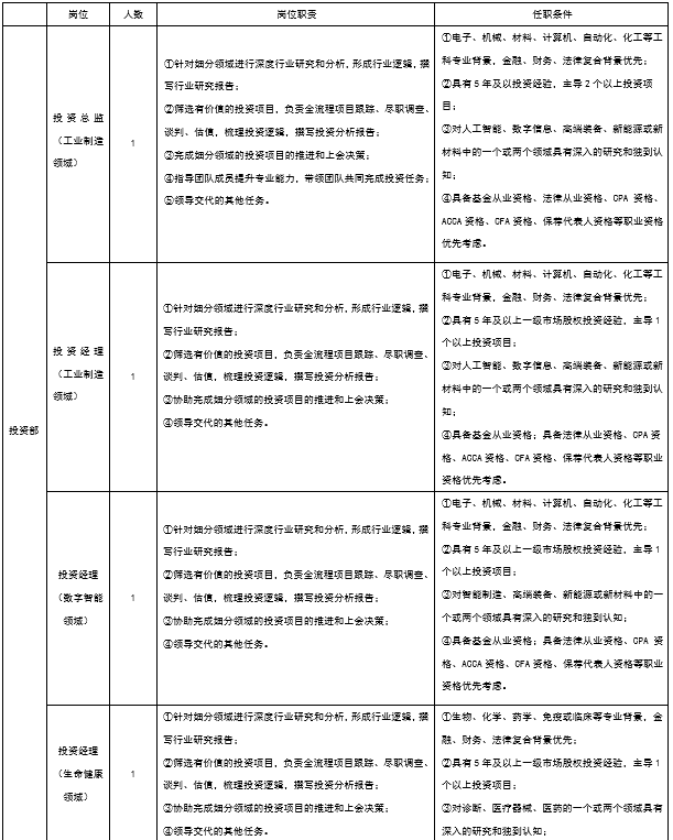 1.投资部 投资总监1名,投资经理3名;