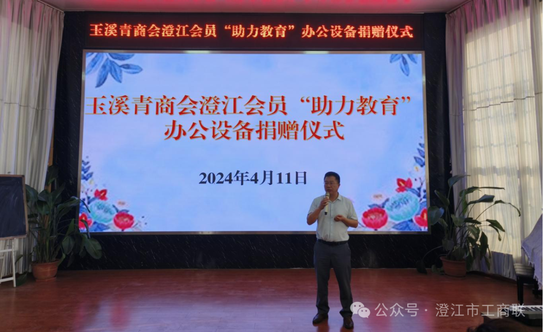 4月11日,玉溪市青商会到龙街中心小学开展爱心助学活动,向龙街中心校捐赠了8台打印机,价值12000元,市工商联党组书记、常务副主席朱文龙参加捐赠活动。