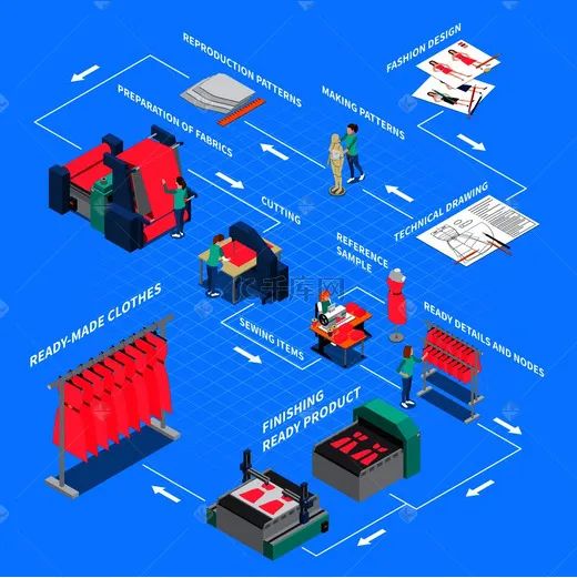 服装车间:粘衬机,锁眼机,缝纫机,锁边机。