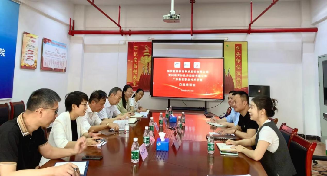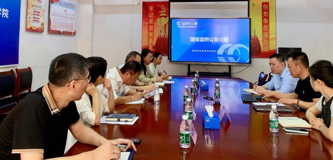为进一步加强产业学院建设,推动产学协同创新,寻求校企合作共赢、共谋发展的良好局面。2024年4月12日上午,我校与黄冈教育谷投资控股有限公司、国信蓝桥教育科技股份有限公司何亮副总经理、产品总监陈贞铭、运营总监高文君就中兴ICT产业学院的进一步建设举行了交流会,学校董事长王磊、校长杨海涛、副校长刘秋华、信息工程学院院长刘俊莉、教学科研部部长胡克静及相关老师参会。