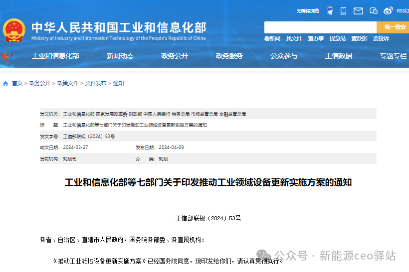 4月9日,工信部等七部门发布关于印发《推动工业领域设备更新实施方案》的通知中指出,针对航空、光伏、动力电池、生物发酵等生产设备整体处于中高水平的行业,鼓励企业更新一批高技术、高效率、高可靠性的先进设备。重点推动航空行业全面开展大飞机、大型水陆两栖飞机及航空发动机总装集成能力、供应链配套能力等建设;光伏行业更新大热场单晶炉、高线速小轴距多线切割机、多合一镀膜设备、大尺寸多主栅组件串焊机等先进设备;动力电池行业生产设备向高精度、高速度、高可靠性升级,重点更新超声波焊接机、激光焊接机、注液机、分容柜等设备;生物发酵行业实施萃取提取工艺技改,更新蒸发器、离心机、新型干燥系统、连续离子交换设备等。