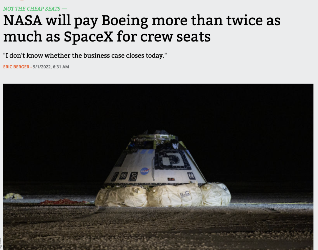 但当SpaceX已经载了有九个人后,而波音还没有进行第一次载人试飞。
