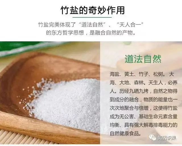 竹盐经由1300℃以上的高温炼制,通过特殊方式完成了由普通食品向高能量食品转变的过程。经过国际权威检测机构SGS检测,竹盐中丰富的矿物质及全面均衡的各种微量元素以天然合理的结构存在,有利于各种微量元素的吸收。