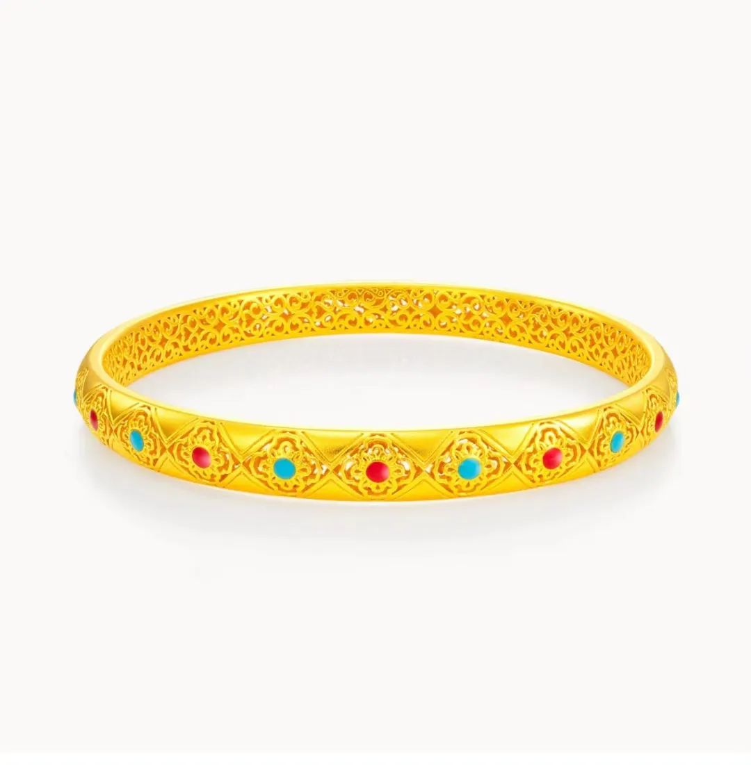宫锁祥年-金辉彩霞足金999珐琅花丝手镯
