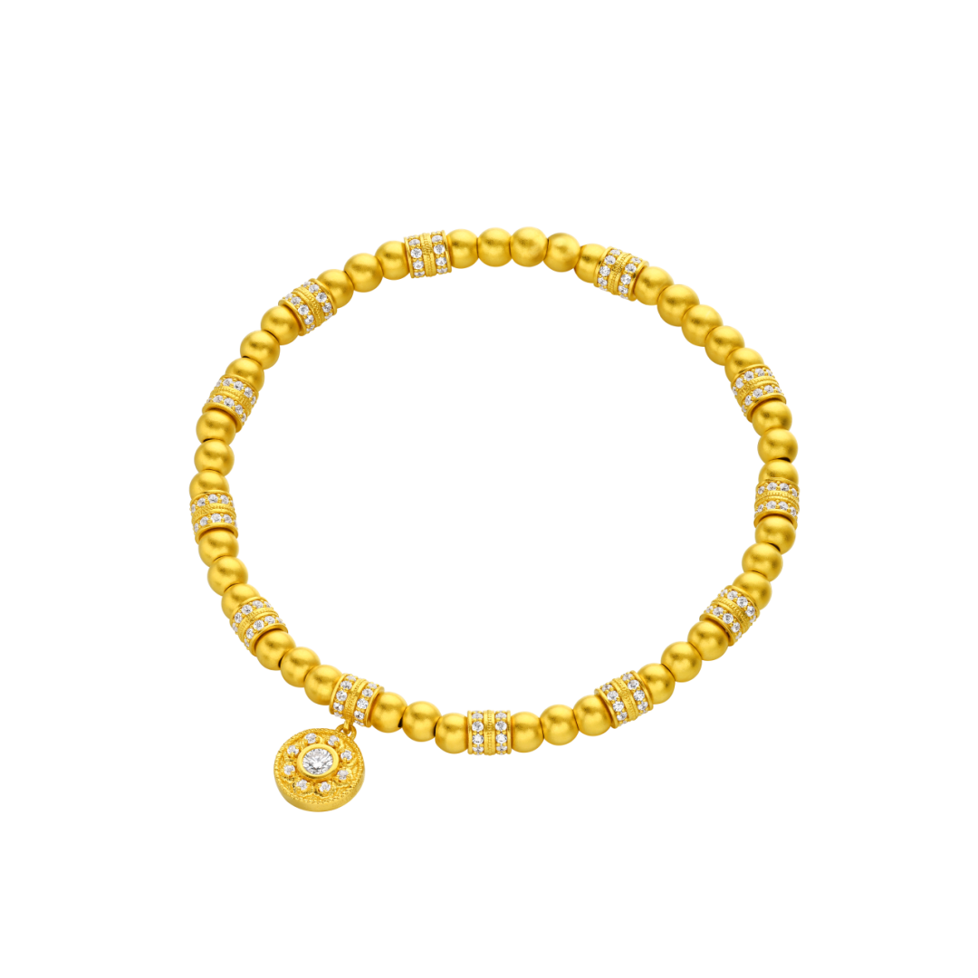 以泡泡玛特的经典MOLLY 角色形象为原型设计,串珠表面采用抛光及喷砂工艺,高度还原了她的标志性金黄色微曲的短发造型以及可爱又傲娇的表情,大大的眼睛充满了对这世界的好奇心。