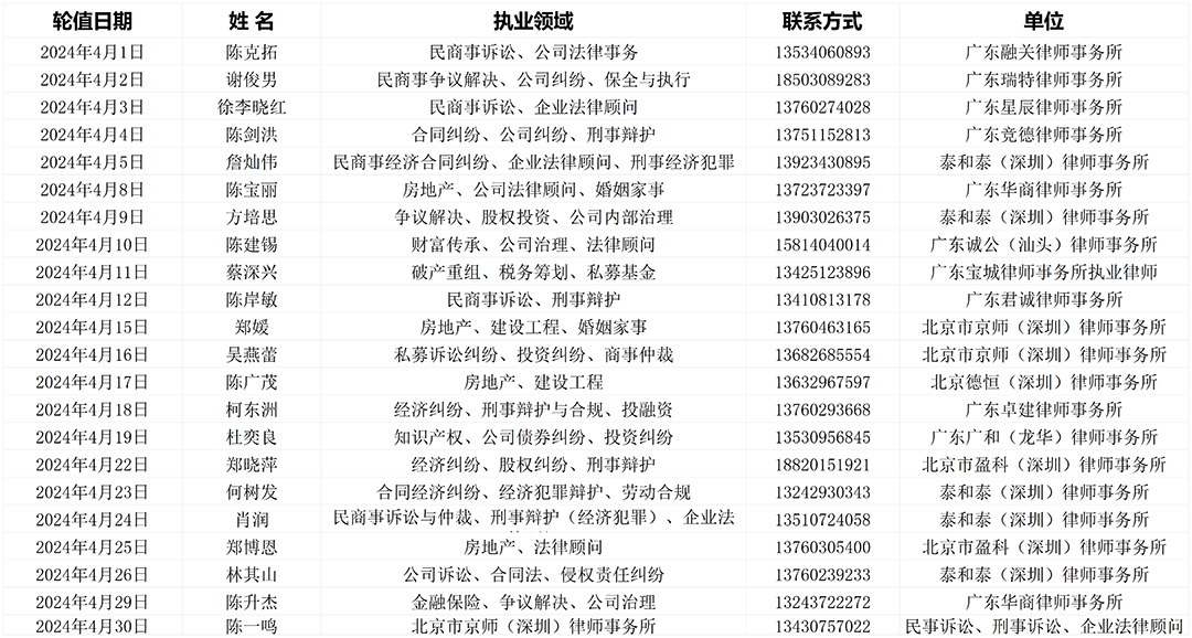 <2024年4月法工委律师值班表>