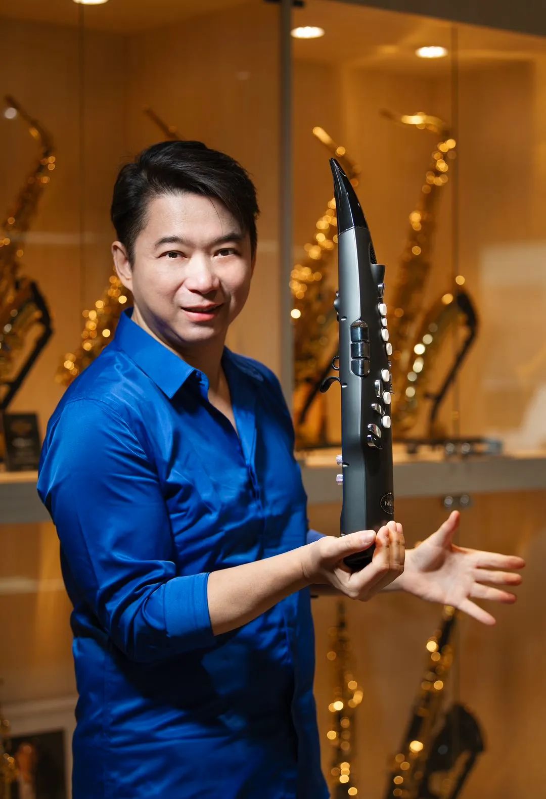 作为资深的萨克斯演奏家,董舜文先生使用的是NUX纽克斯「B-6萨克斯风无线系统」以及最新的「NES-1电吹管」。